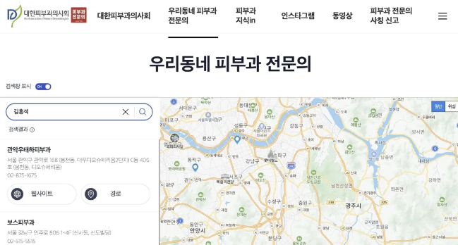 어가 붙어 있는 기관은 레드 라벨 피부과 전문 기관이며, “clinic”이라는 단어가 붙어 있는 기관은 그렇지 않습니다. 이 방법은 간단한 초기 식별에 유용합니다. 공식 웹사이트 검색: 대한피부과협회의 공식